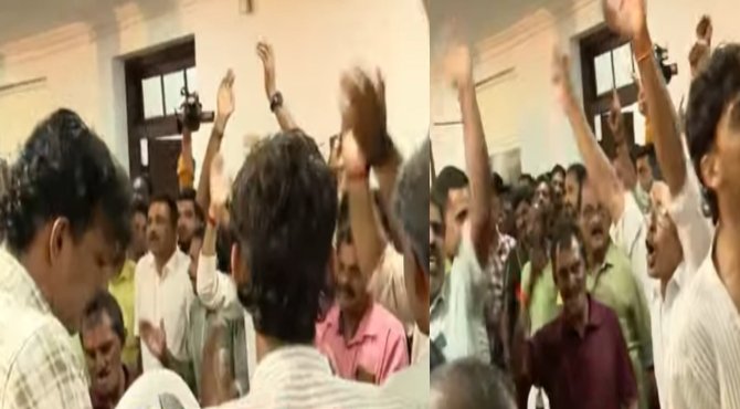 തിരുവനന്തപുരം കോർപ്പറേഷനിൽ ആദ്യ കൗൺസിൽ യോഗത്തിന് മുമ്പ് ഗണഗീതം പാടി തിരഞ്ഞെടുക്കപ്പെട്ട ബിജെപി പ്രവർത്തകർ. പ്രതിഷേധങ്ങളിലാതെ ഗണഗീതം പാടി അവസാനിപ്പിക്കുകയായിരുന്നു. കോർപ്പറേഷന് പുറത്ത് ദേശീയ നേതാക്കളടക്കമുള്ളവരുടെ സാന്നിധ്യത്തിലായിരുന്നു അംഗങ്ങൾ ഗണഗീതം പാടിയത്. ഇതിന് ശേഷം നടന്ന ആദ്യ കൗൺസിൽ യോഗത്തിലും ഈ വിഷയവുമായി ബന്ധപ്പെട്ട് വേറെ ചർച്ചകൾ ഒന്നും തന്നെ ഉണ്ടായില്ല. തിരഞ്ഞെടുപ്പ് നടന്ന 100 ഡിവിഷനുകളിലെ കൗൺസിലർമാരാണ് ഇന്ന് സത്യപ്രതിജ്ഞ ചെയ്തത്. എന്നാൽ ഗണഗീതം പാടിയത് പുറത്ത് വലിയ ചർച്ചാവിഷയമായി.