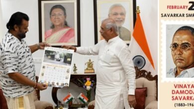 ലോക്ഭവന് പുറത്തിറക്കിയ 2026ലെ കലണ്ടറില് സവര്ക്കറുടെ ചിത്രം. സ്വാതന്ത്ര സമര സേനാനികളുടെയും സാംസ്കാരിക നായകന്മാരുടെയും ചിത്രത്തിനൊപ്പമാണ് സവര്ക്കറുടെ ചിത്രവും കലണ്ടറില്…