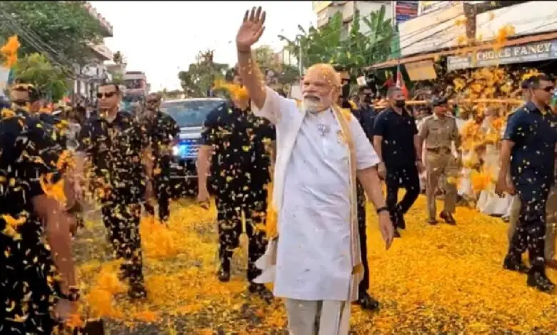 പ്രധാനമന്ത്രി നരേന്ദ്രമോദിയുടെ സന്ദർശനത്തോടനുബന്ധിച്ച് തിരുവനന്തപുരം നഗരത്തിൽ നാളെ ഗതാഗത നിയന്ത്രണം. ശംഖുംമുഖം- എയർപോർട്ട് ഭാഗവും പുത്തരിക്കണ്ടം- കിഴക്കേകോട്ട ഭാഗവും വ്യാഴം, വെള്ളി ദിവസങ്ങളിൽ താൽക്കാലിക റെഡ് സോണായി പ്രഖ്യാപിച്ചിട്ടുണ്ട്. ഈ ദിവസങ്ങളിൽ ശംഖുംമുഖം – എയർപോർട്ട് ഭാഗത്തും പുത്തരിക്കണ്ടം -കിഴക്കേകോട്ട ഭാഗത്തുമുള്ള രണ്ടു കിലോമീറ്റർ ചുറ്റളവിൽ ഡ്രോൺ/ ഡ്രോൺ ക്യാമറകൾ ഉപയോഗിക്കുന്നതും പട്ടം, ബലൂണുകൾ എന്നിവ പറത്തുന്നതും ലേസർ ബീം ലൈറ്റുകൾ എന്നിവ ഉപയോഗിക്കുന്നതും നിരോധിച്ചിട്ടുണ്ട്. തിരുവനന്തപുരം നഗരത്തിലേക്ക് കടന്നുവരുന്ന എല്ലാ വാഹനങ്ങളും നഗരാതിർത്തിയിൽ കർശന സുരക്ഷ പരിശോധനക്ക് വിധേയമാക്കുമെന്ന് സിറ്റി പൊലീസ് കമ്മീഷ്ണർ അറിയിച്ചു